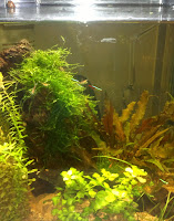 Elame näeme kuidas kooslus edeneb, vetikakasvu vähendamise ja taimekasvu edendamise nimel tuleb veel pingutada. Valgust saab antud praegu esialgse 10 tunni asemel 9. Väetise lisamisega olen ajuti teinud mõnepäevaseid pause lisaks nädalavahetusele kuna tundub, et see raua lisandiga igapäevaväetis annab punase karva ka algselt kena rohelisena kastis ilutsenud kardheinale. Teda sai ka pisut kärbitud vahepeal kuna heljus kangesti keset "pilti" ja tundus, et varjutab valgustust teiste eest ära. Uuemad kasvud on üsna "tõmmud" mitte helerohelised nagu algselt. Ilmselt tuleb veel üks ports teste hankida ja jälgima-lahendusi otsima hakata. Abiks kogu mu ettevõtmises on olnud peamiselt mu tragi õde ning loomulikult ka akvaristide foorumi rahvas. Suured tänud asjaosalistele!