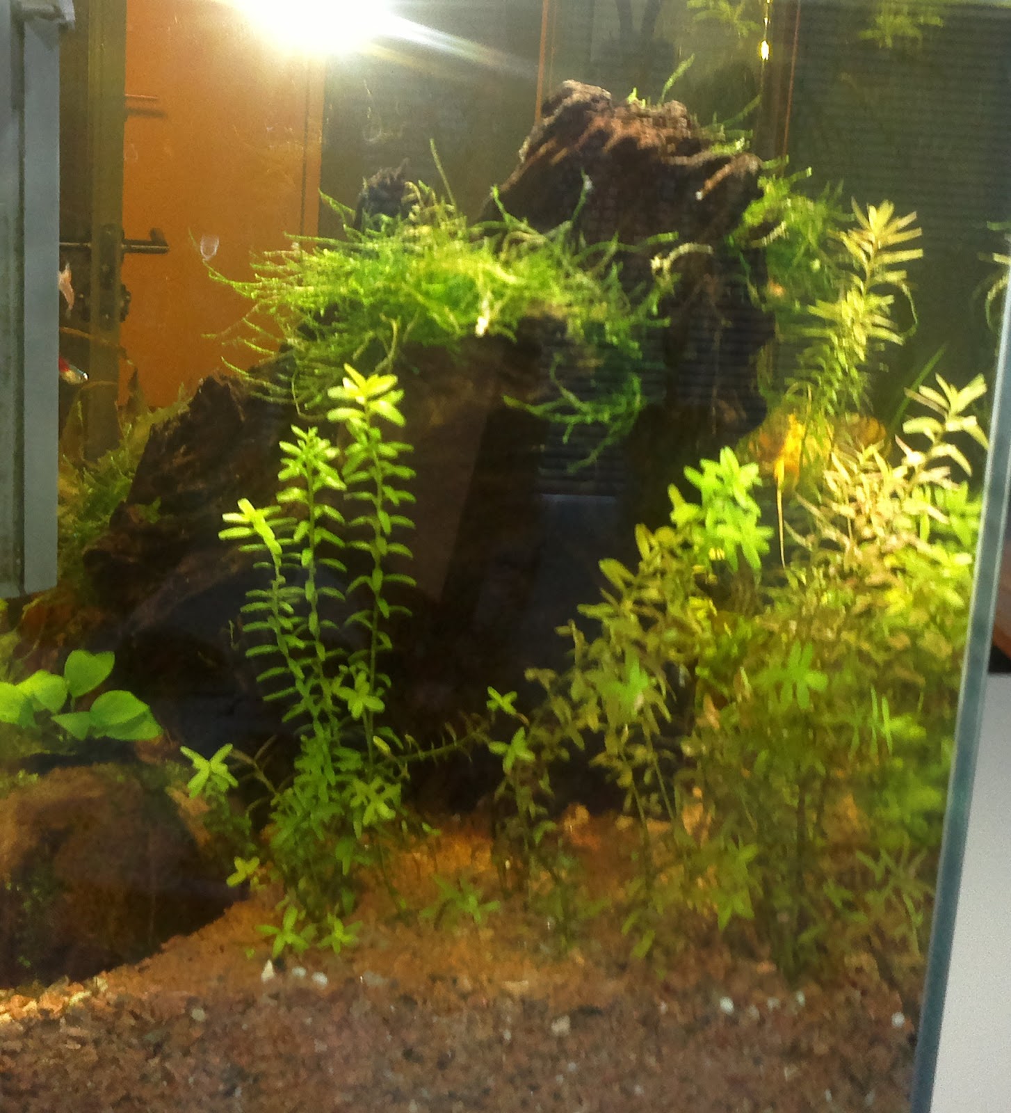 2 ja pool nädalat tagasi tehtud suurem ümberkorraldus. Idee oli teha midagi põhjaga, et lenduv Manado püsivamalt paika saaks ning püstitada "mägi" keset akvat.